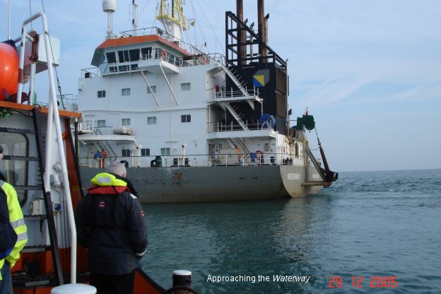 submerged pipeline (known as a sinkerline) approximately 750m long x 700mm diameter connects the