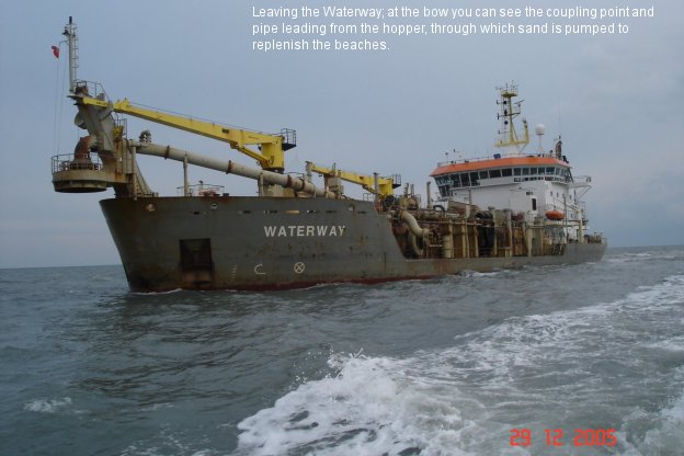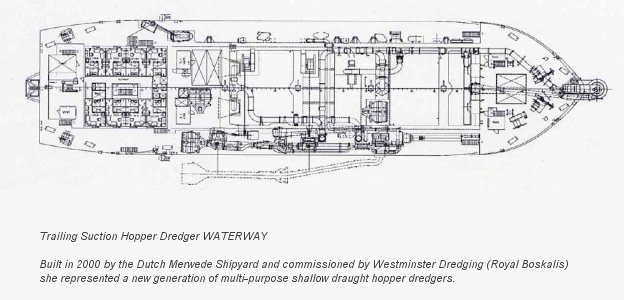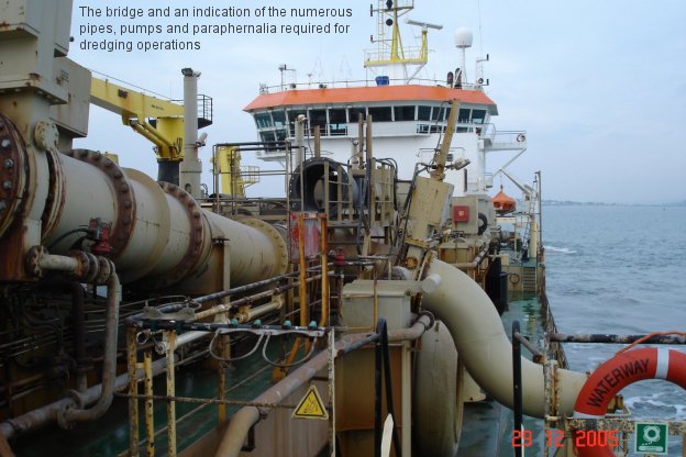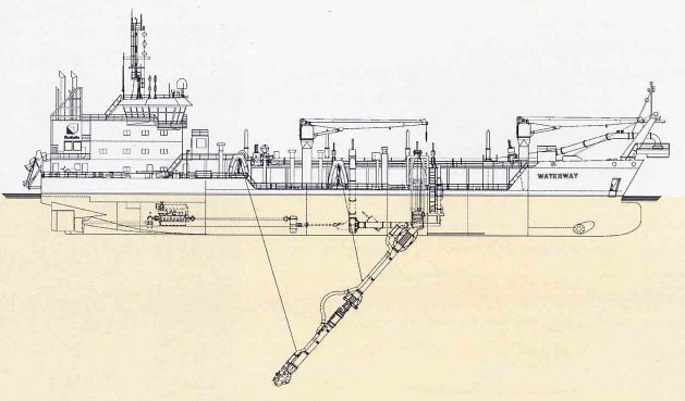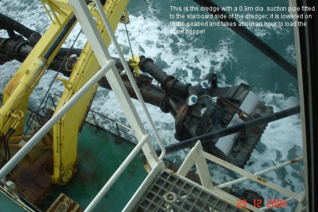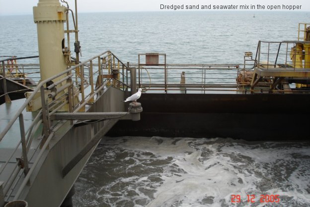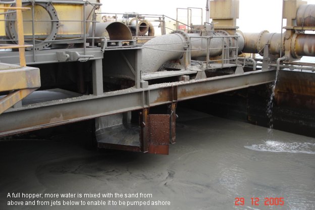 open hopper. A single dredge and suction pipe (0.90m dia) on