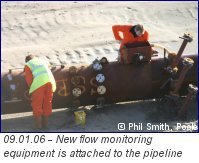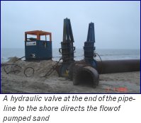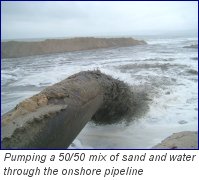 the foreshore. The sand/water mixture from the pipeline flows in