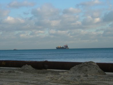 After the storm. Pumping ashore at daybreak. |