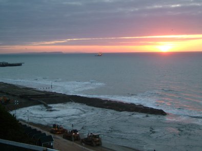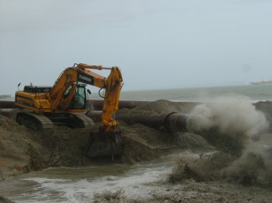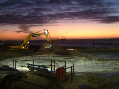 The sun rises on another day of beach replenishment |