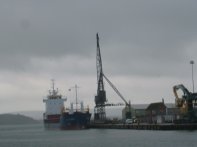being off-loaded. Meanwhile the crane awaits deliveries at