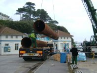 sections of pipe for the sinkerline - are offloaded from midday. |